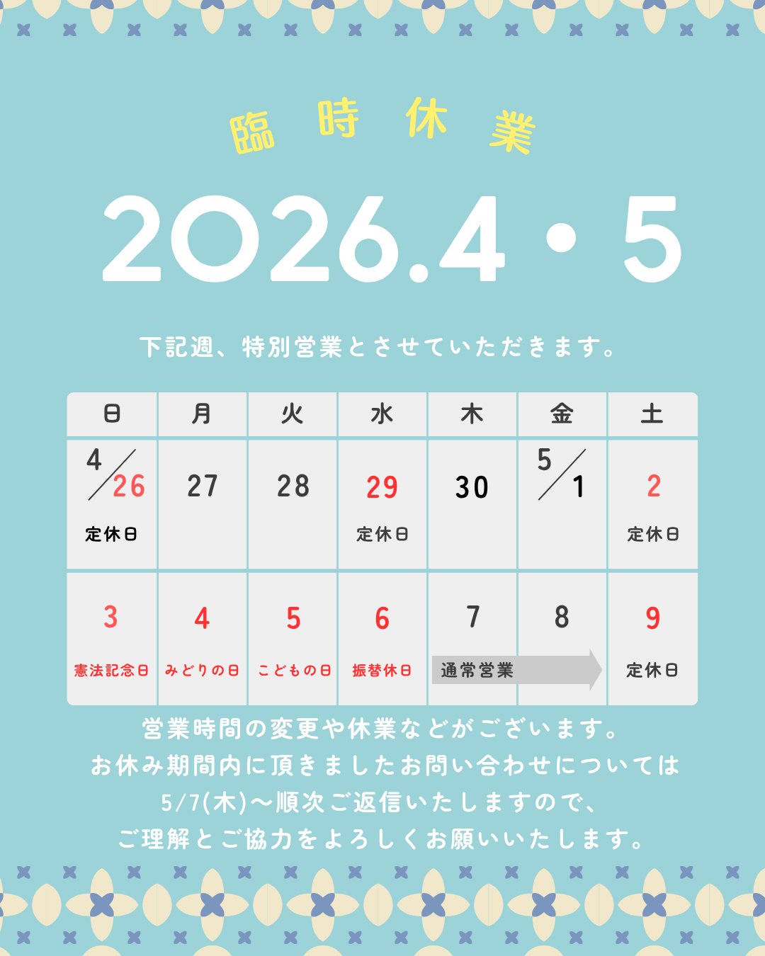 2026年 ゴールデンウィーク休業のお知らせ